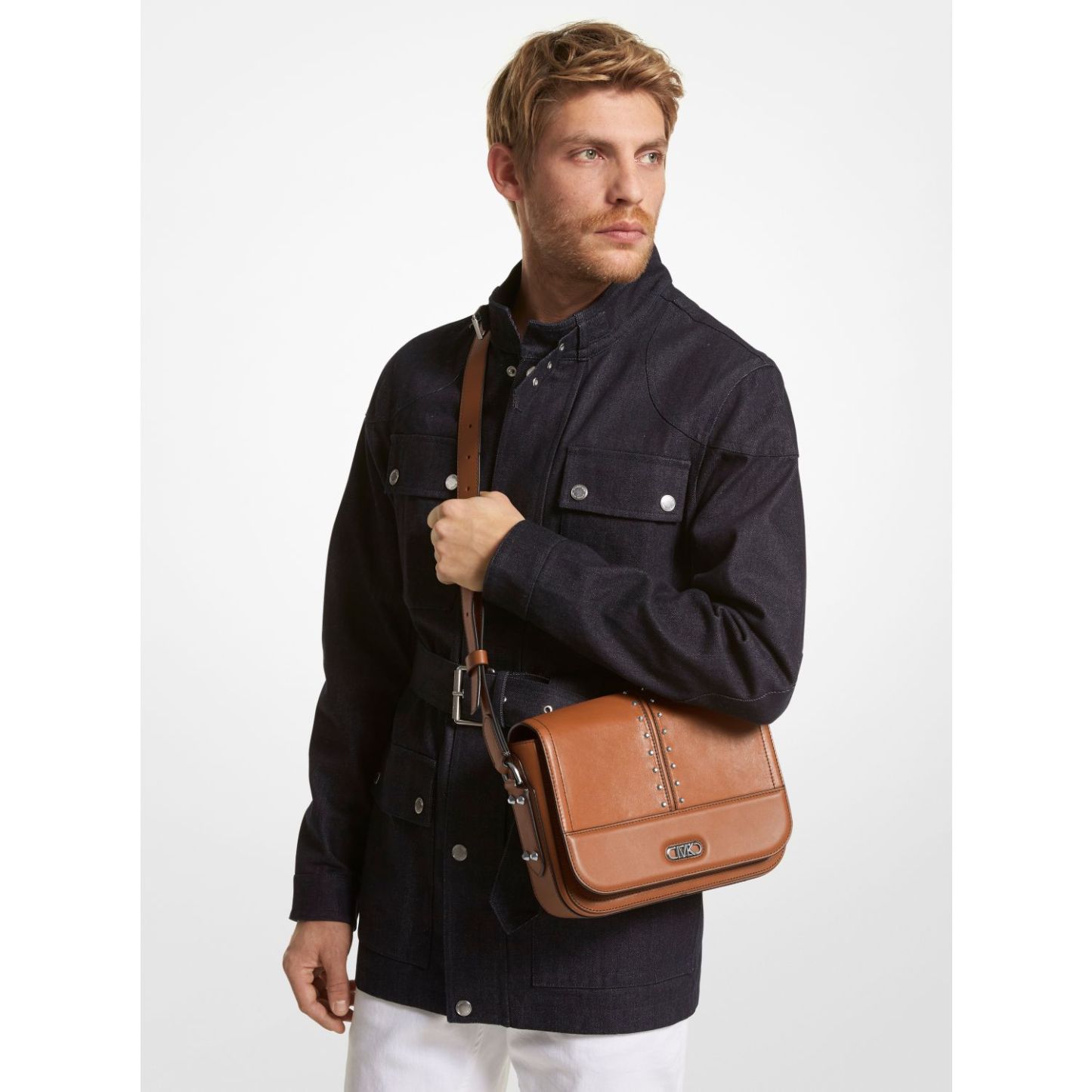 Astor Medium Studded Leather Messenger Bag