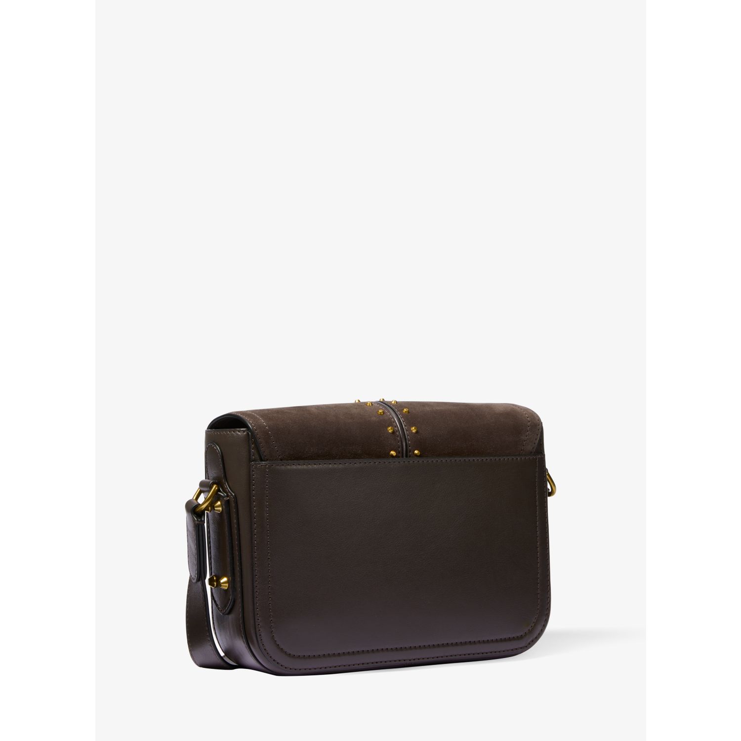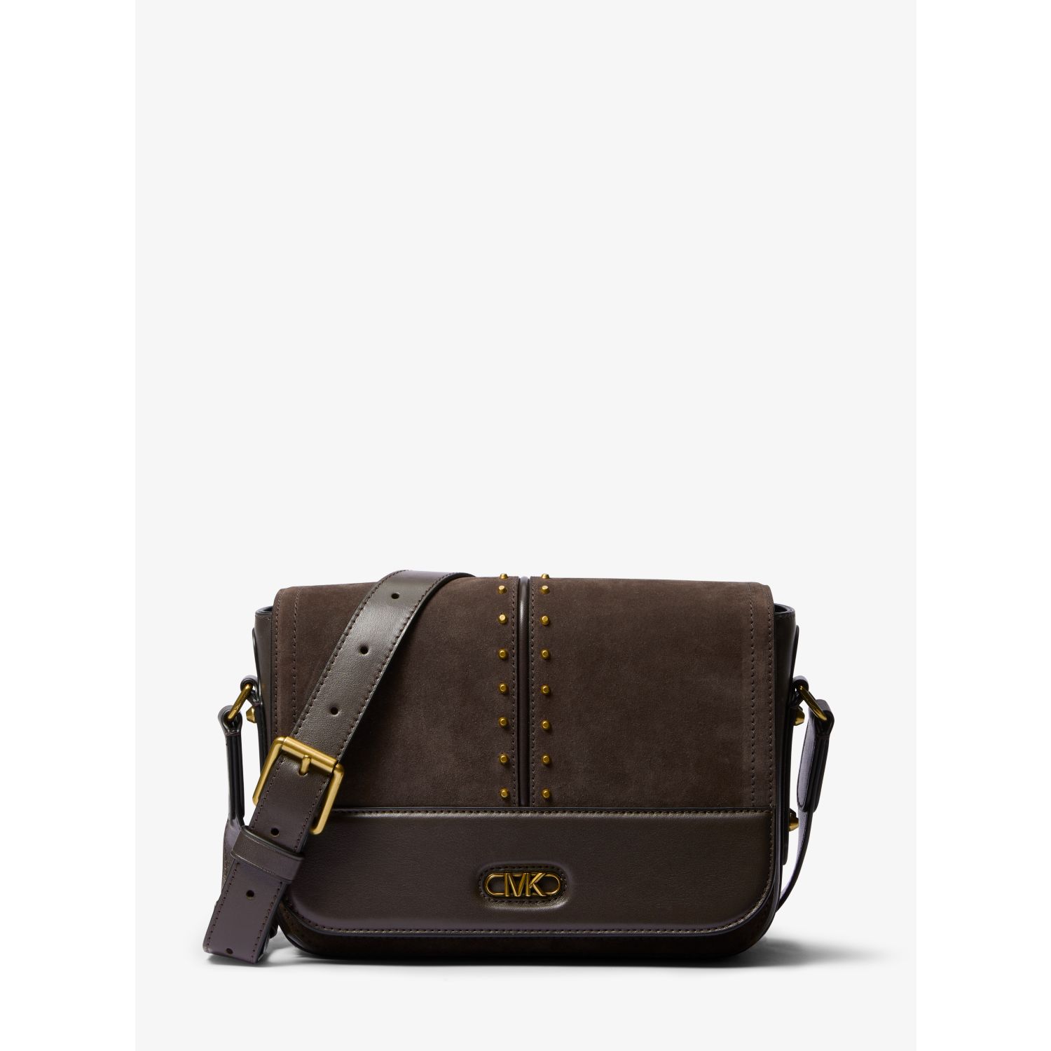 Meet the Astor: a sleek suede-and-leather messenger bag for all your adventures. Punctuated with antique gold-tone studs and our Empire logo, this crossbody stores a day’s worth of essentials and is secured with a flap snap closure. An adjustable strap makes for ease of carrying.