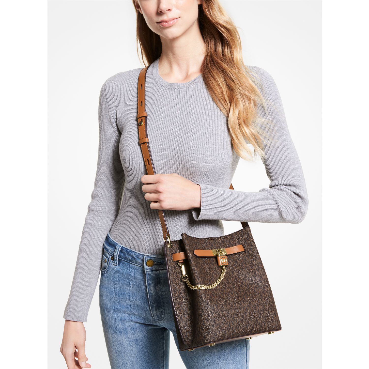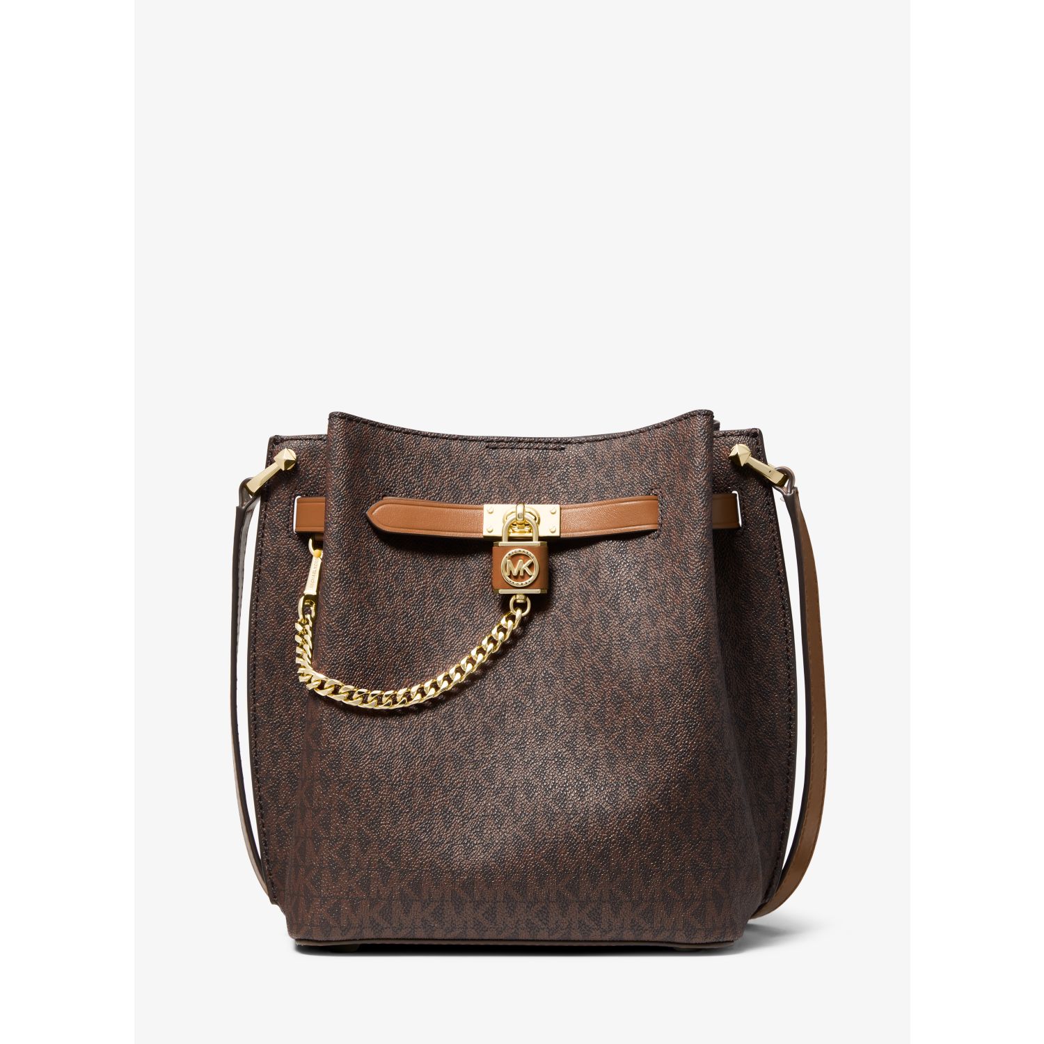 Our heritage-chic Hamilton Legacy returns for the season in a bucket silhouette you’ll love for years to come. This Signature-print canvas version features side gussets and a polished chain-link pendant for decorative appeal. An adjustable crossbody strap ensures a customized fit .