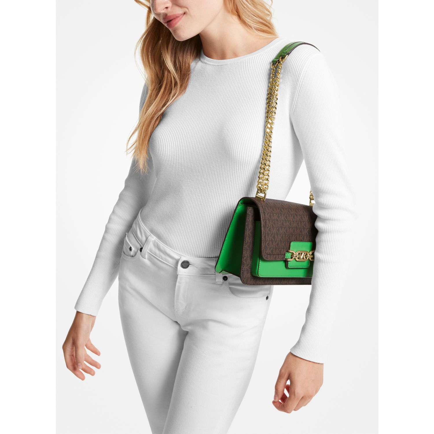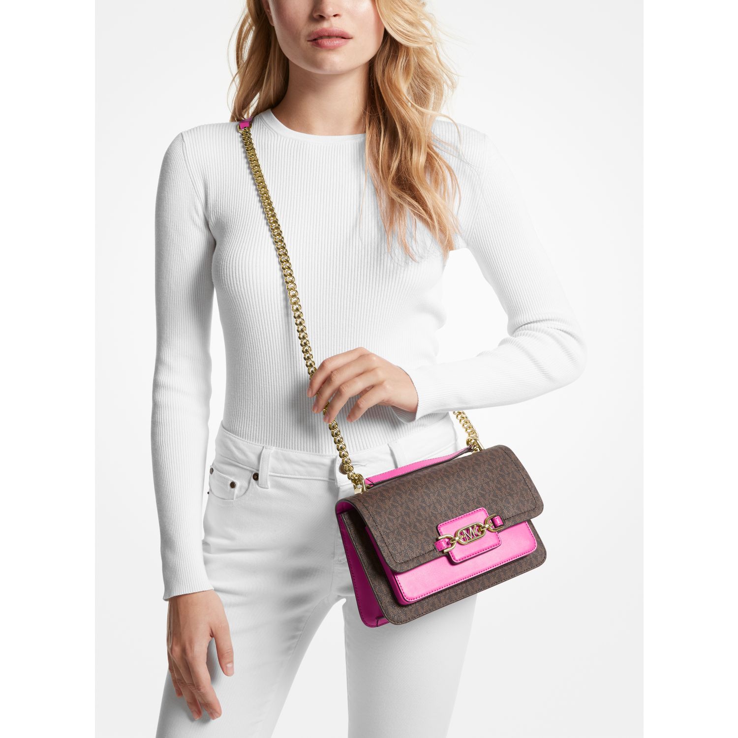 A smart and polished piece for every day, this Signature-print Heather shoulder bag is designed in a modern fold-over silhouette with smooth accents and branded hardware for a novelty finish. It’s perfectly sized to fit your daily essentials, with inside slip pockets for tucking your phone and card case.