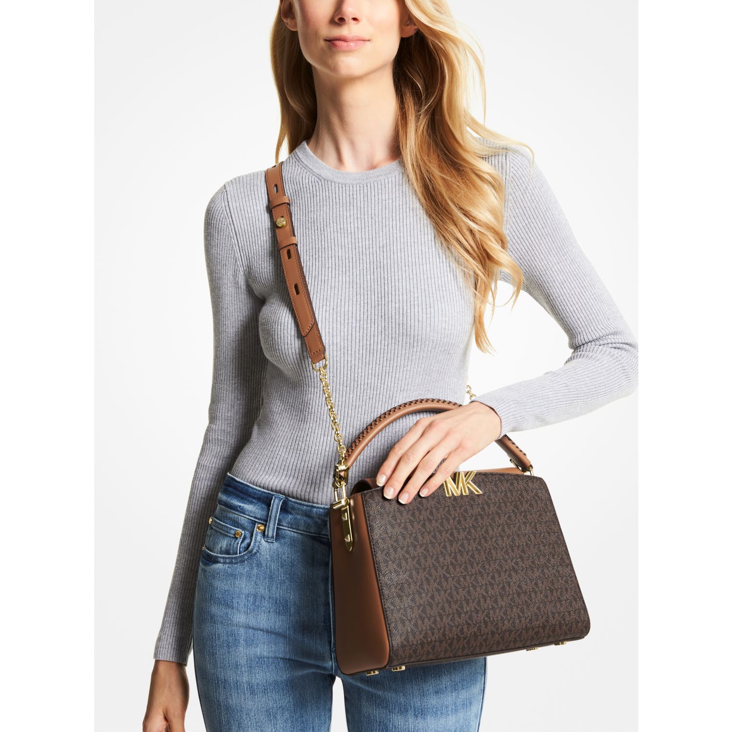 • Exterior details: detachable crossbody strap