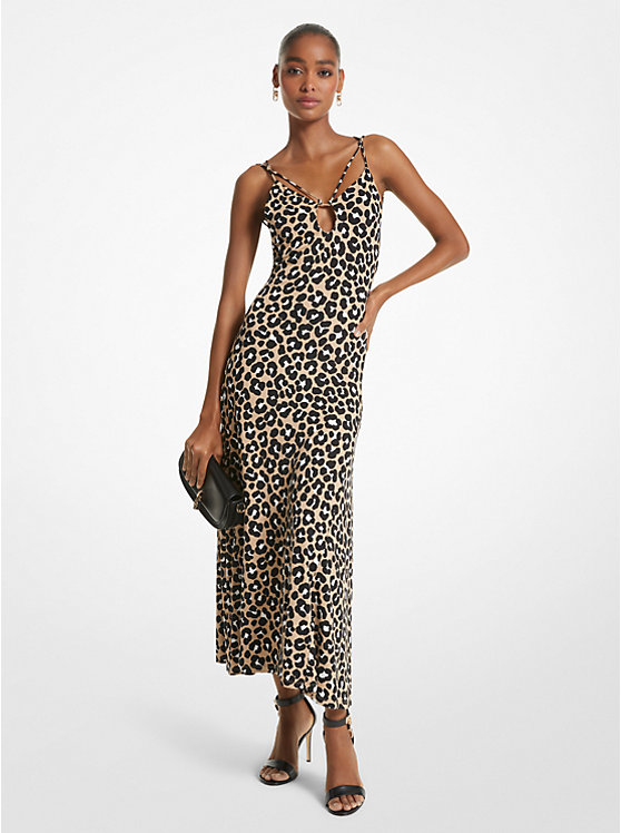 Leopard Print Matte Jersey Cutout Slip Dress