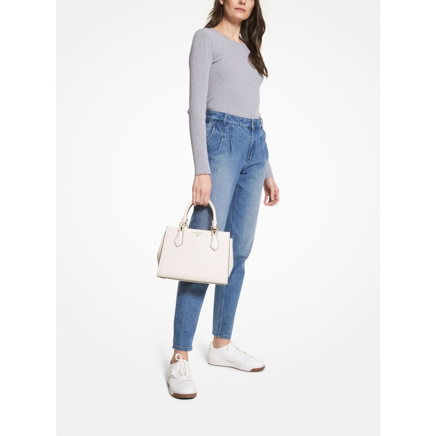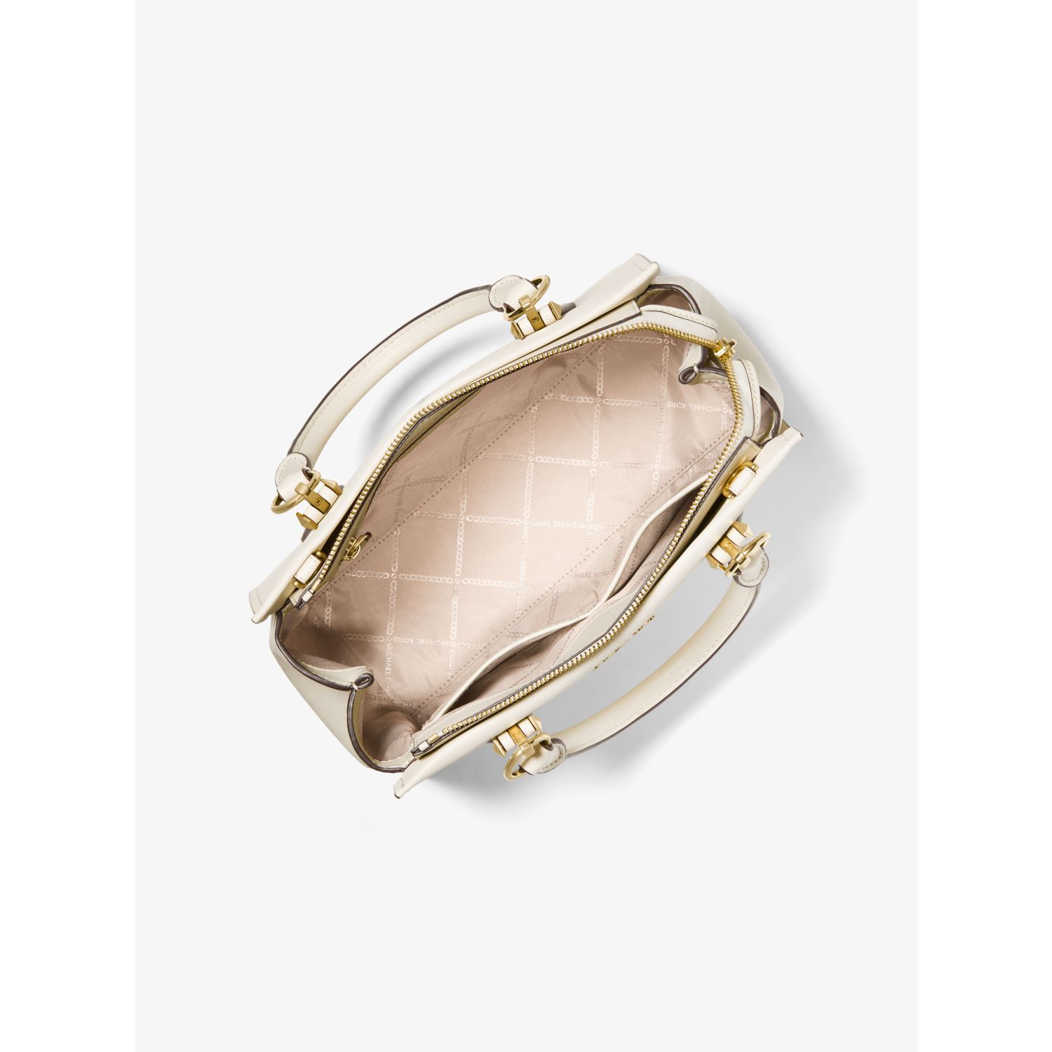 • Pale gold-tone hardware