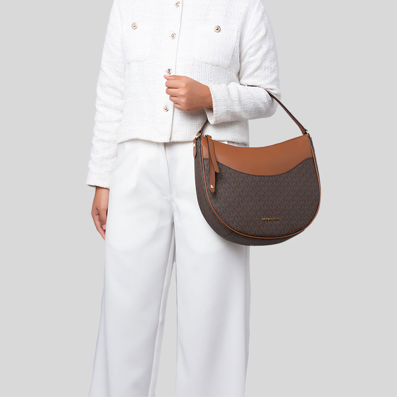 MICHAEL KORS Dover Signature Large Half Moon Shoulder Bag Brown 35R4G4DL7B