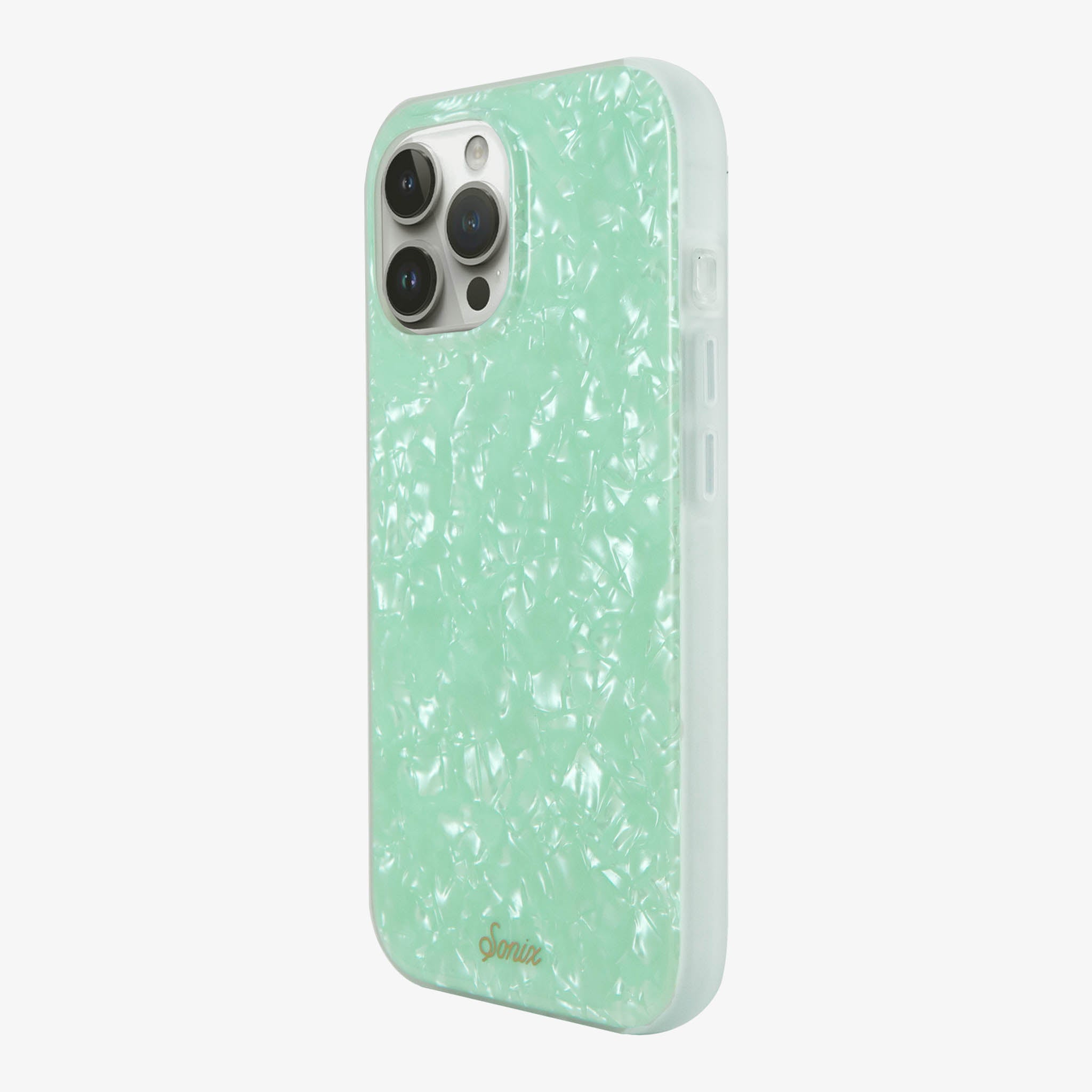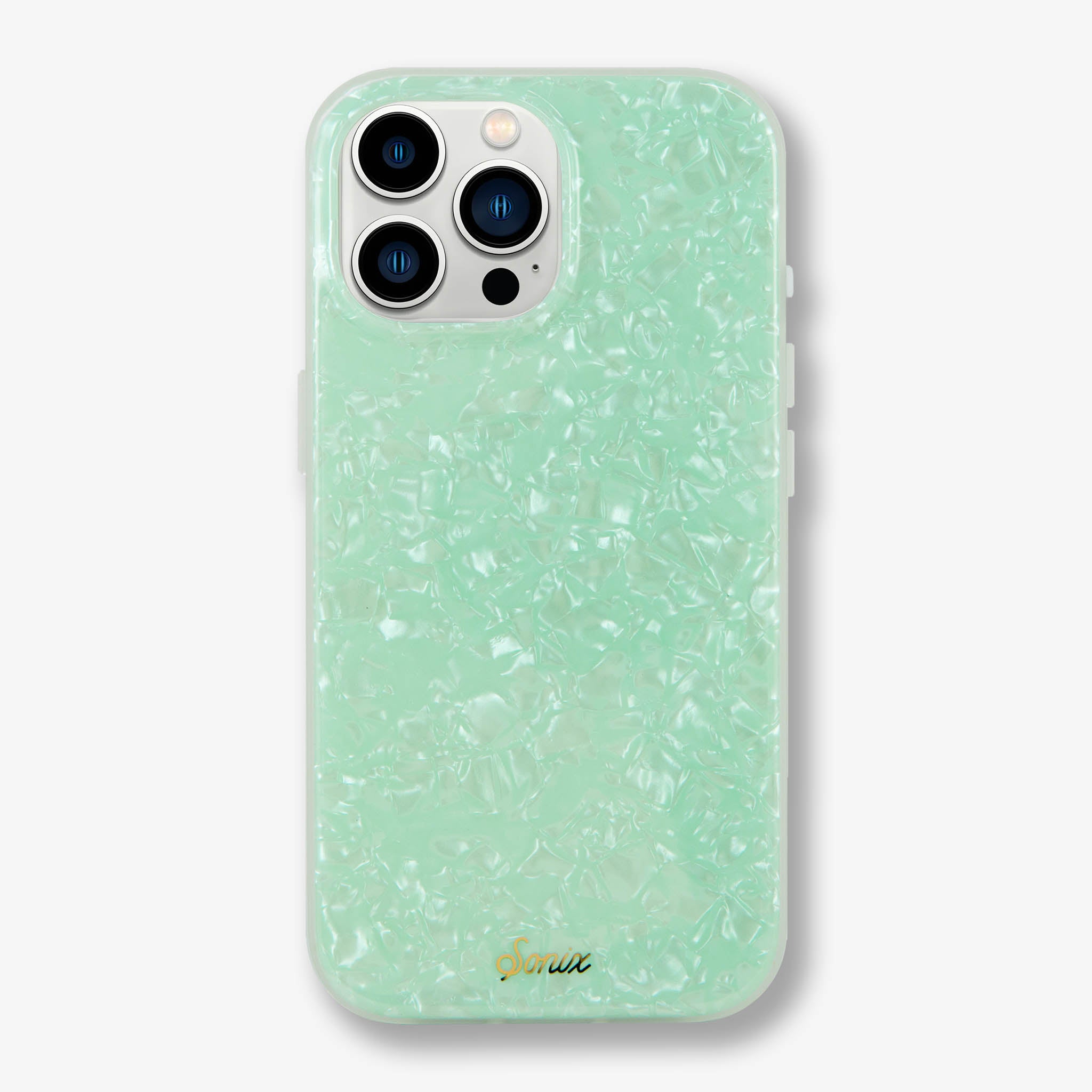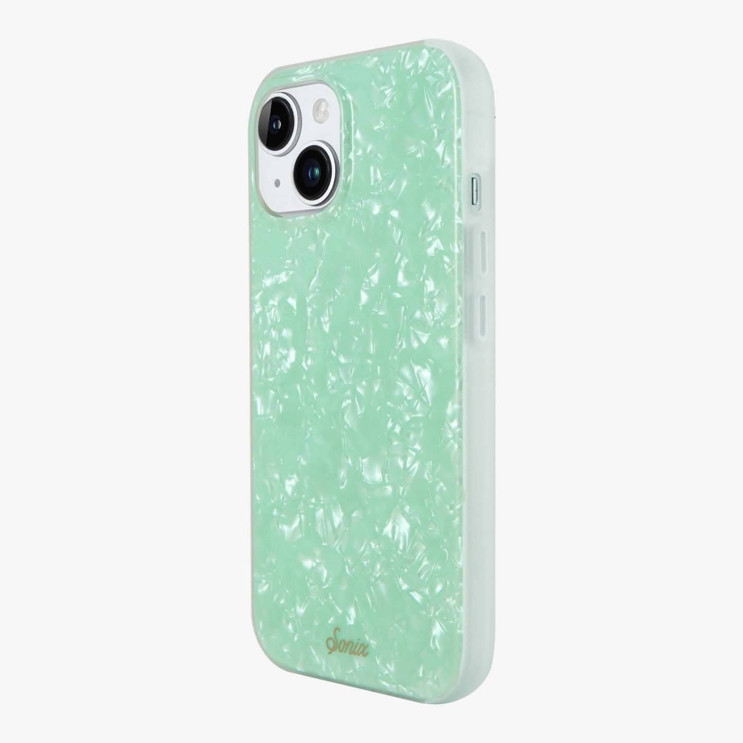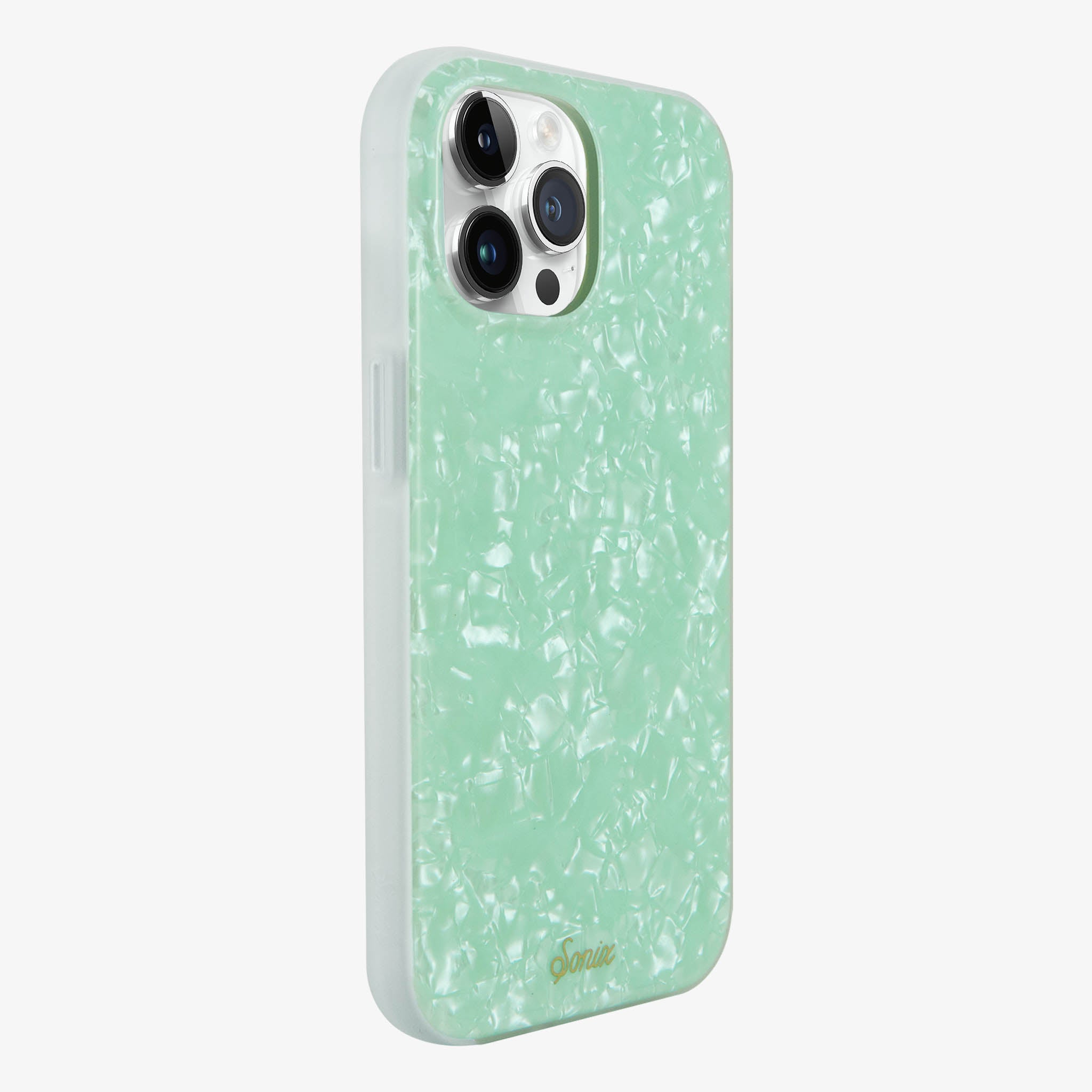 Are you breathing in the fresh, ocean air or just gazing at our Seafoam Tort MagSafe® Compatible iPhone case and mentally transporting yourself to the beach? With the perfect pale hue of a crystal shoreline, this phone case brings the calming effects of an island vacation with you everywhere you go. The shimmering tort adds to the majestic effect of the gentle waves you will definitely need before responding to that work email.?